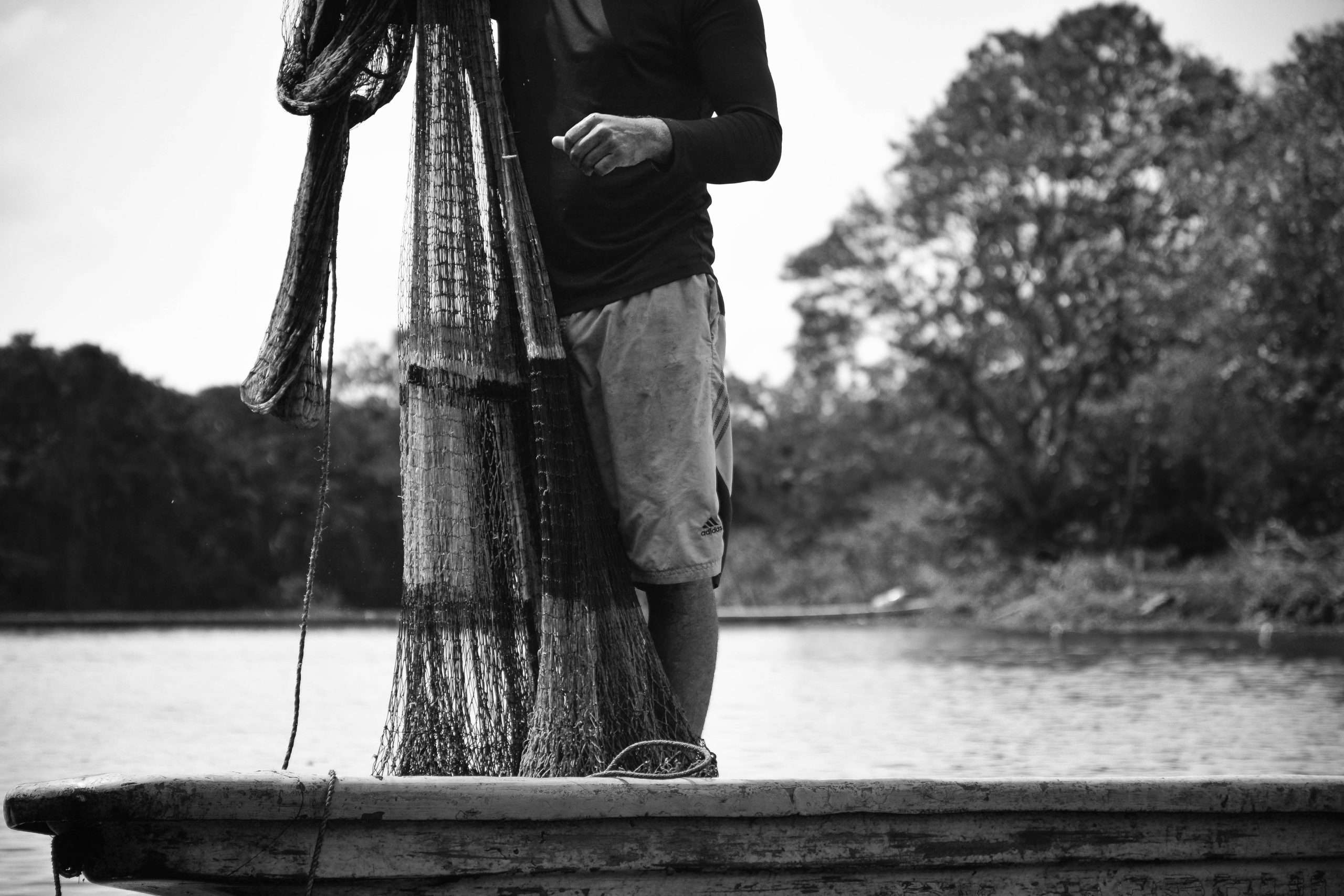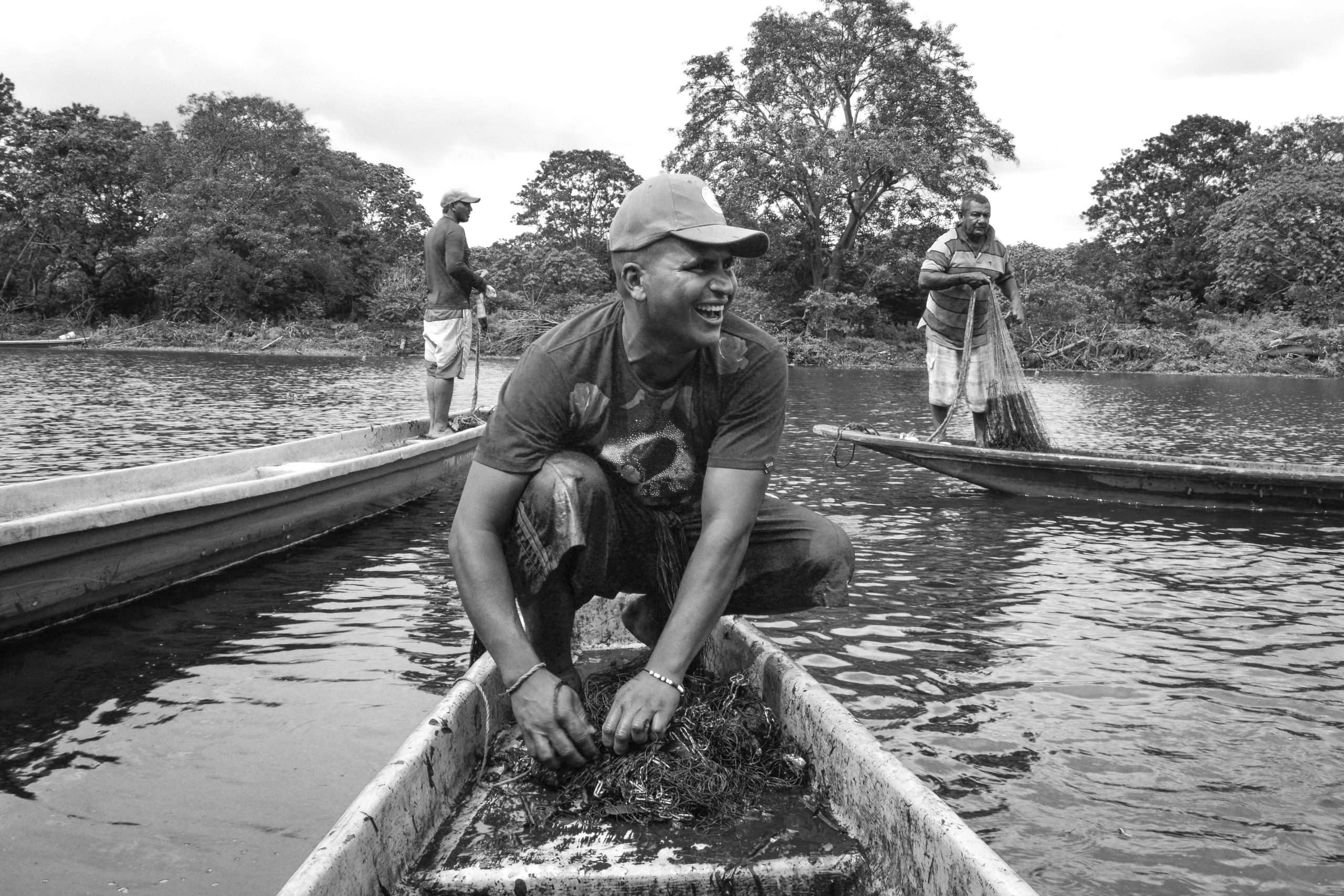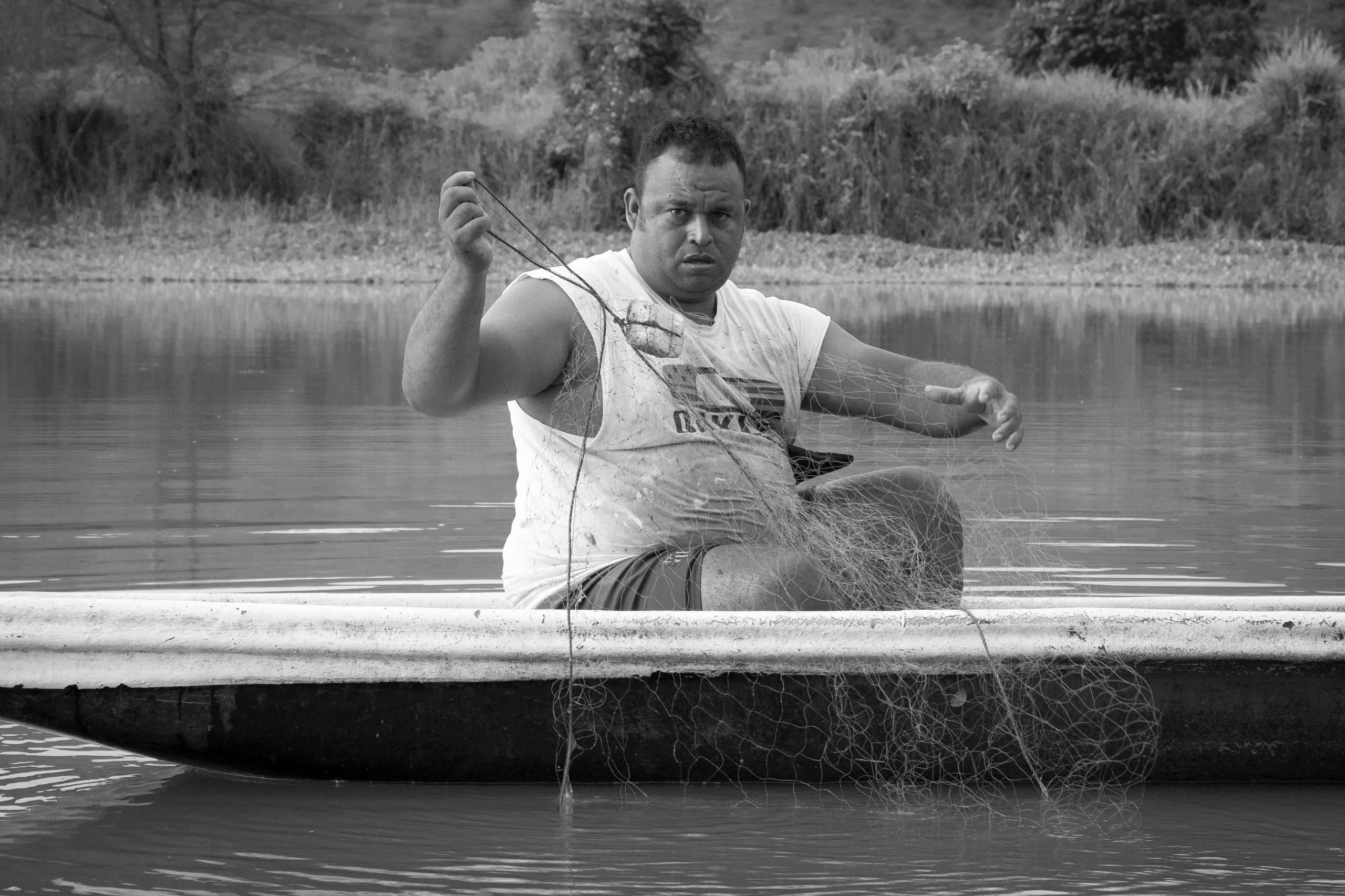 Cuando una gran cantidad de peces se reúne en una sola zona del río, es usual que los pescadores se encuentren en “topa”. Desde esquinas opuestas lanzan al mismo tiempo las atarrayas que vuelan desde sus canoas y se despliegan abiertas sobre el agua.