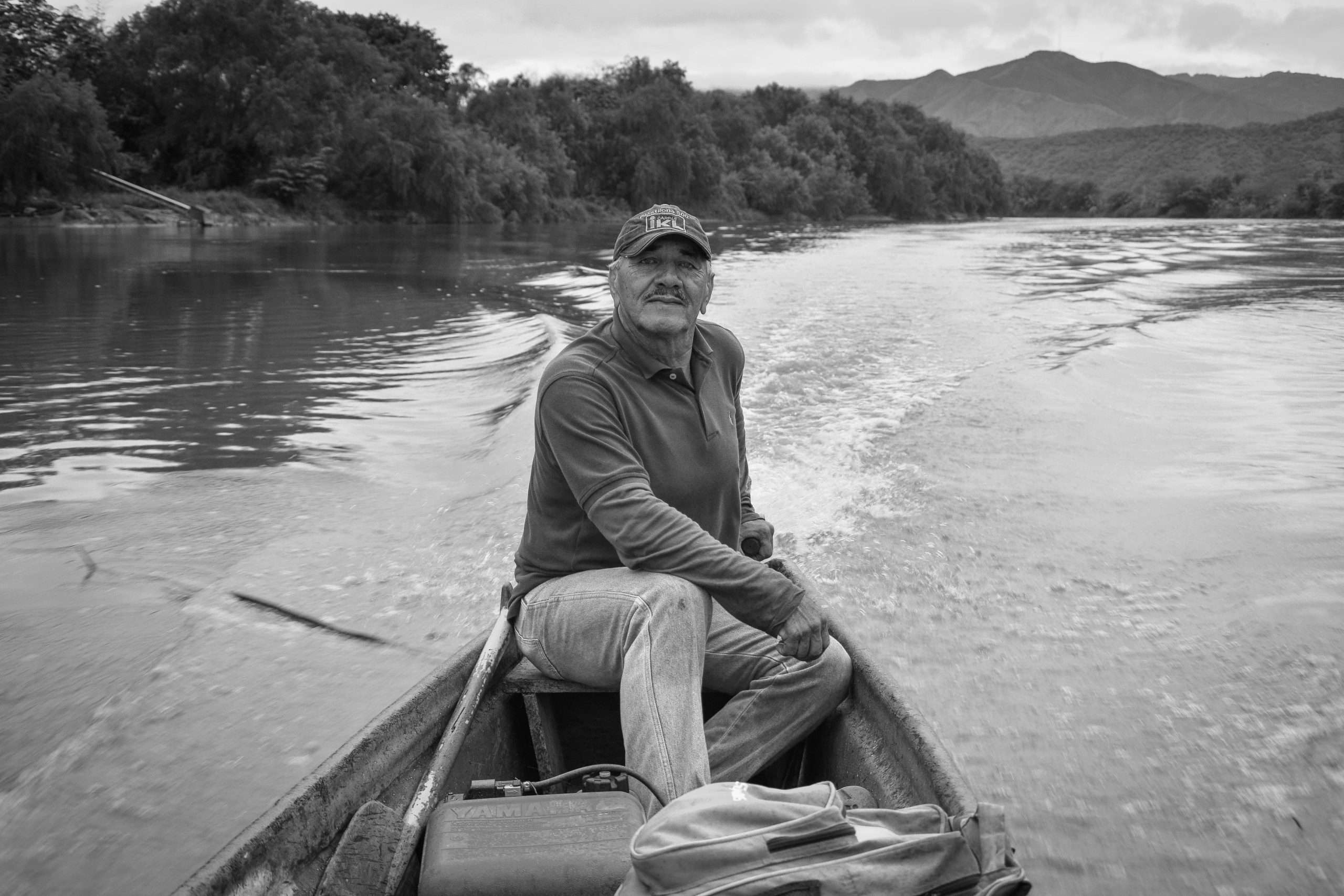 Miguel Vivas, pescador artesanal desde hace más de 30 años, recorre el río Cauca con su canoa a motor y remo.